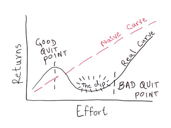 But—and this matters—failing fast isn’t the same as quitting at the first sign of difficulty. If you’re in a real Dip, the kind that separates people who achieve extraordinary things from people who dabble, you need to push through that stage. The trick is knowing the difference between a Dip (hard but high potential payoff if you push through) and a Dead End (hard and gets you nowhere).