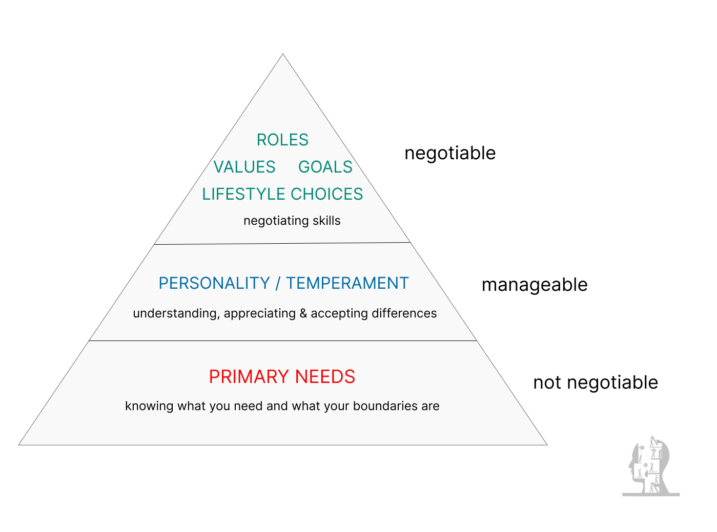 Learn why some relationship conflicts can be solved through negotiation while others signal deeper incompatibility. This relationship pyramid model reveals what's truly negotiable in love.